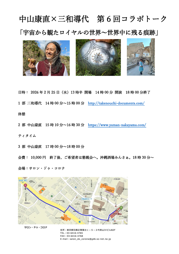 中山康直 × 三和導代 第6回コラボトーク 宇宙から観たロイヤルの世界~世界中に残る痕跡 |